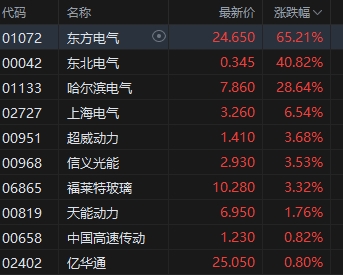 7月21日消息,港股三大指數(shù)集體上漲。截至收盤,恒生指數(shù)(24994.141, 168.48, 0.68%)漲0.68%,報24994.14點,恒生科技指數(shù)(5585.5, 46.67, 0.84%)漲0.84%,國企指數(shù)漲0.6%。盤面上,科網(wǎng)股普漲,美團、京東漲超2%,阿里巴巴、網(wǎng)易、小米、快手漲超1%;電力設(shè)備股普漲,東方電氣(24.65, 9.73, 65.21%)一度飆升700%;建材水泥股大漲,華新水泥(18.6, 8.58, 85.63%)漲超80%;鋼鐵股漲幅居前,重慶鋼鐵股份(1.77, 0.36, 25.53%)漲超25%;有色金屬概念走高,中國鋁業(yè)(6.05, 0.36, 6.33%)漲超6%;中資券商股活躍,東方證券(7.28, 0.51, 7.53%)漲超7%;石油股走強,延長石油國際(0.47, 0.07, 17.50%)漲超17%;寧德時代港股再創(chuàng)歷史新高。