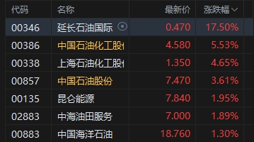 石油股走強,延長石油國際漲超17%。高盛上調(diào)了今年下半年的原油價格預期。當前市場焦點已從經(jīng)濟衰退擔憂轉(zhuǎn)向可能的供應(yīng)中斷、OECD國家的石油庫存減少、對閑置產(chǎn)能預期的大幅下降以及對俄羅斯生產(chǎn)受限的擔憂。該行將其2025年下半年布倫特原油價格預測上調(diào)了5美元/桶,至66美元/桶;同時將WTI原油價格預測上調(diào)了6美元,至63美元/桶。