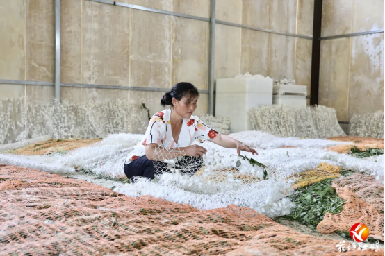 走進(jìn)合作社蠶房,整齊排列的蠶簇上布滿潔白的蠶繭。合作社負(fù)責(zé)人石群輝介紹,雖然第五批蠶繭單產(chǎn)略有下降,但通過選用耐熱蠶種、實施精細(xì)化管理,仍保證了蠶繭品質(zhì)。