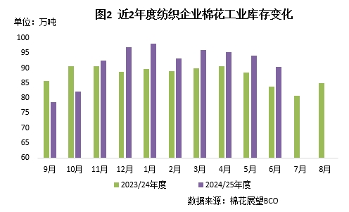 三、棉紡織企業(yè)原料庫(kù)存穩(wěn)中略降