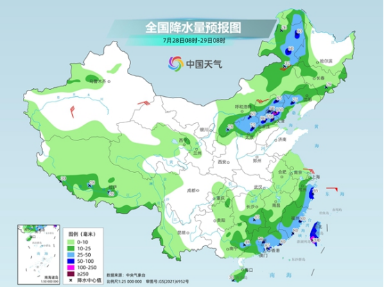 未來三天(7月28日至30日),華東地區(qū)降雨頻繁,浙江、江蘇、上海等地雨勢猛烈,華北、東北一帶依然降雨連連,雨勢逐漸減弱。在降水較少波及到的黃淮、江漢、華南以及陜西關(guān)中、四川盆地等地,本周高溫悶熱天氣持續(xù),不少地方還將晝夜連軸熱。