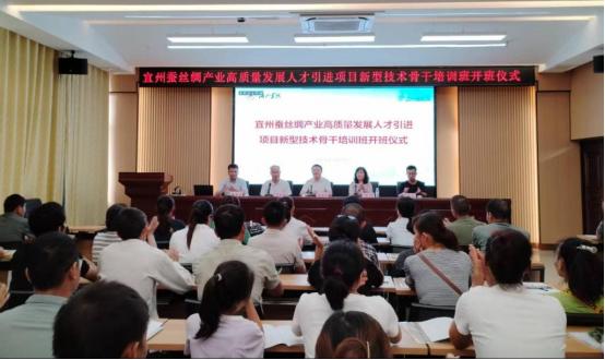 7月25日,宜州蠶絲綢產(chǎn)業(yè)高質(zhì)量發(fā)展人才引進項目新型技術(shù)骨干培訓(xùn)班在河池學(xué)院格致樓102會議室開班。宜州區(qū)科學(xué)技術(shù)局副局長韋孟威,河池學(xué)院化學(xué)與生物工程學(xué)院院長、廣西桑蠶生態(tài)學(xué)與智能化技術(shù)應(yīng)用重點實驗室主任李曉東教授,以及來自德勝、洛東、洛西、石別和安馬等鄉(xiāng)鎮(zhèn)50余名桑蠶技術(shù)骨干參加開班儀式。開班儀式由河池學(xué)院化學(xué)與生物工程學(xué)院覃玥教授主持。