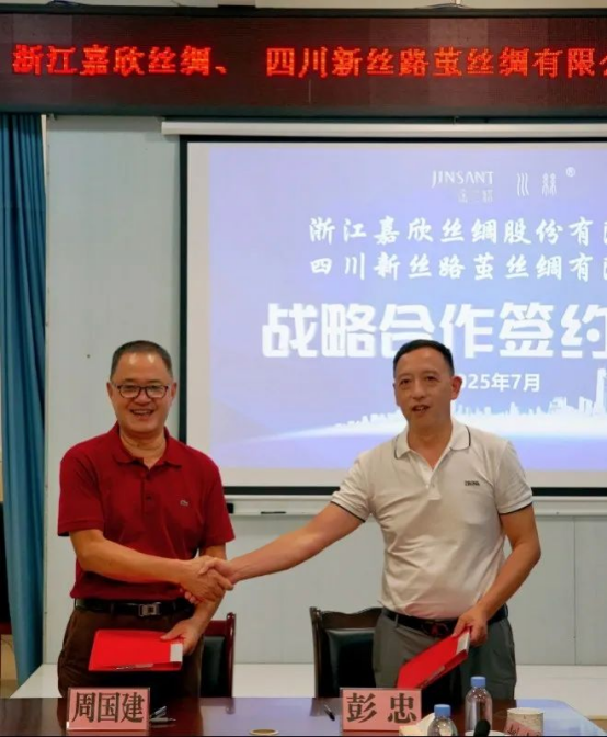 隨后,深化合作簽約儀式在新絲路公司會議室舉行。雙方董事長代表企業(yè)簽署《嘉欣絲綢—新絲路深化合作備忘錄》,圍繞“高品質(zhì)桑蠶繭絲基地共建、產(chǎn)能互補、品牌聯(lián)合開發(fā)、國內(nèi)外市場協(xié)同”四大方向達成新一輪合作。