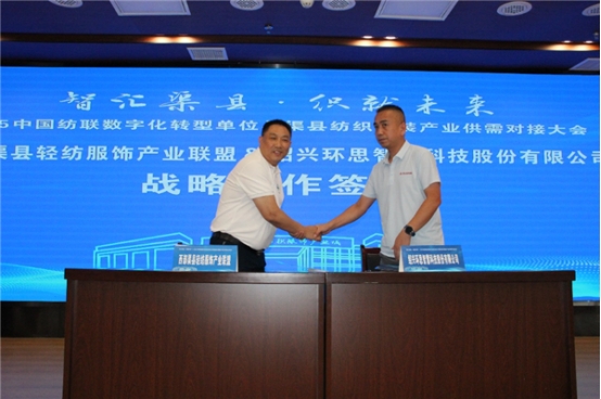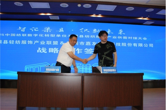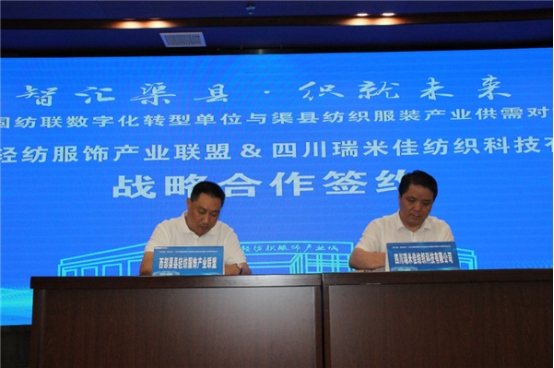 中國紡聯(lián)數(shù)字化轉(zhuǎn)型單位6家優(yōu)質(zhì)企業(yè)與西部渠縣輕紡服飾產(chǎn)業(yè)聯(lián)盟簽訂了戰(zhàn)略合作協(xié)議,就服裝研發(fā)設(shè)計(jì)產(chǎn)品應(yīng)用推廣、提升產(chǎn)業(yè)智能化水平、天然纖維面料的創(chuàng)新研發(fā)與生產(chǎn)、加強(qiáng)品牌建設(shè)、培育產(chǎn)業(yè)集群、推動(dòng)產(chǎn)業(yè)數(shù)字化轉(zhuǎn)型等方面開展協(xié)同合作。