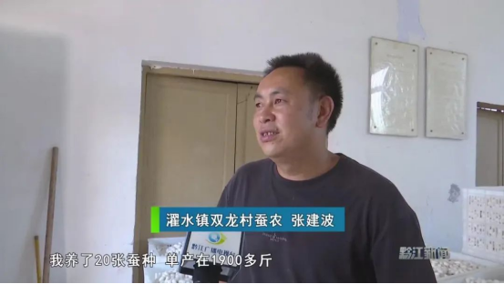 濯水鎮(zhèn)雙龍村蠶農(nóng) 張建波:“我養(yǎng)了20張蠶種,單產(chǎn)在1900多斤,總產(chǎn)值可能在4萬8千元左右。很高興,苦點(diǎn)值得。”