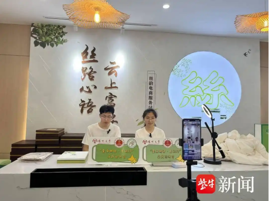 “蠶桑新語·里運行”大學生實踐團隊,近日在“中國繭都”鹽城富安進行非遺直播,將鹽城千年蠶桑文化推上“云端”。該活動由揚州大學文學院暑期實踐團和富安繭絲綢文化館合作開展,運用了“文化講解+技藝展演+直播帶貨”的非遺傳承新模式。