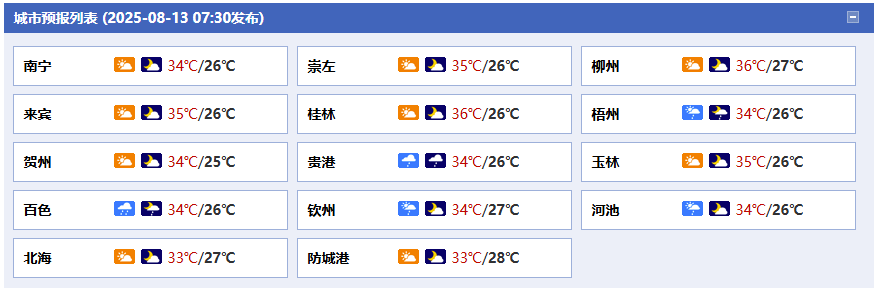 廣西氣象臺(tái)13日05時(shí)發(fā)布預(yù)報(bào):