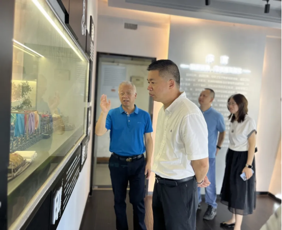 在趙之毅董事長的陪同下,金書記一行首先參觀了喜得寶非遺館。趙董講述了杭州絲綢練染業(yè)的輝煌過往,曾經(jīng)運(yùn)河沿岸染坊林立,依水而建。如今,喜得寶肩負(fù)歷史使命和行業(yè)責(zé)任,將76家染坊的技藝凝聚一身,至今仍扎根運(yùn)河畔,守護(hù)著這份非遺技藝和匠心精神,金書記對此表達(dá)了由衷的敬意。