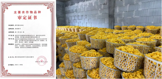 金黃繭色家蠶新品種‘星絲路1號(秋·鳳×金·禹)’,2023年通過浙江省實(shí)驗(yàn)室聯(lián)合鑒定,2024年農(nóng)村中試通過浙江省品種審定委員會桑蠶專業(yè)組的考察審查。2025年浙江省主要農(nóng)作物品種審定委員會一致認(rèn)為該品種是一中絲量彩色繭蠶品種,體質(zhì)強(qiáng)健好養(yǎng),產(chǎn)繭量高,繭絲質(zhì)優(yōu),繭絲金黃鮮亮、色牢度符合要求,適宜在長江流域蠶區(qū)各蠶期飼養(yǎng)。
