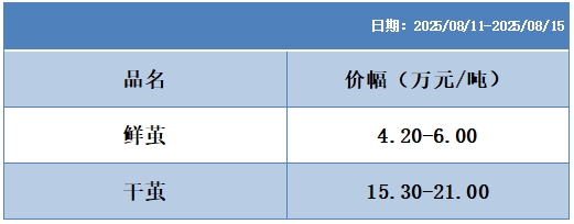 本周協(xié)作單位所報蠶繭價格區(qū)間統(tǒng)計