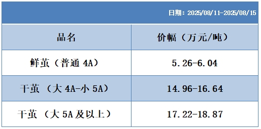 根據(jù)本周蠶繭報價按照指數(shù)方案形成的基準(zhǔn)品價格區(qū)間