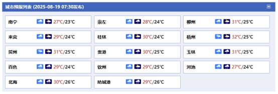 今天白天,崇左、百色、河池、南寧、防城港、欽州、北海、玉林等市有大雨到暴雨、局地大暴雨并伴有短時雷暴大風等強對流天氣,其它地區(qū)有小到中雨、局地大雨或暴雨。沿海地區(qū)有6級風,陣風7~9級。