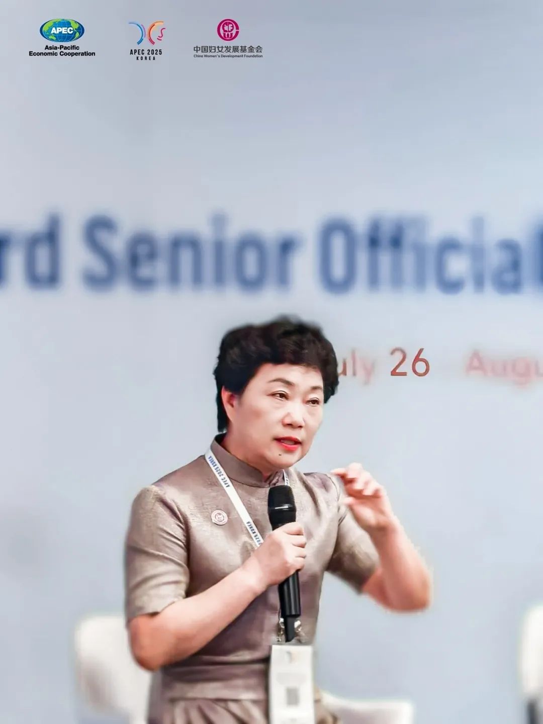 近日,在韓國仁川APEC會(huì)議中心舉行的“APEC她力量助力可持續(xù)未來”公益圓桌對話上,蘇州市女企業(yè)家協(xié)會(huì)副會(huì)長、蘇州繡娘絲綢有限公司董事長戚秋蘭作為中國婦女發(fā)展基金會(huì)的杰出公益伙伴受邀出席,并作為中國優(yōu)秀女性企業(yè)家代表,向亞太地區(qū)生動(dòng)展示了中國非遺蘇繡的創(chuàng)新魅力與中國女性在文化傳承與經(jīng)濟(jì)發(fā)展中的獨(dú)特力量。本次活動(dòng)由螞蟻集團(tuán)公益支持,騰訊SSV健康普惠實(shí)驗(yàn)室、北京快手科技有限公司、中國三星等公益伙伴及APEC經(jīng)濟(jì)體和聯(lián)合國機(jī)構(gòu)代表等約80名中外嘉賓與會(huì)。