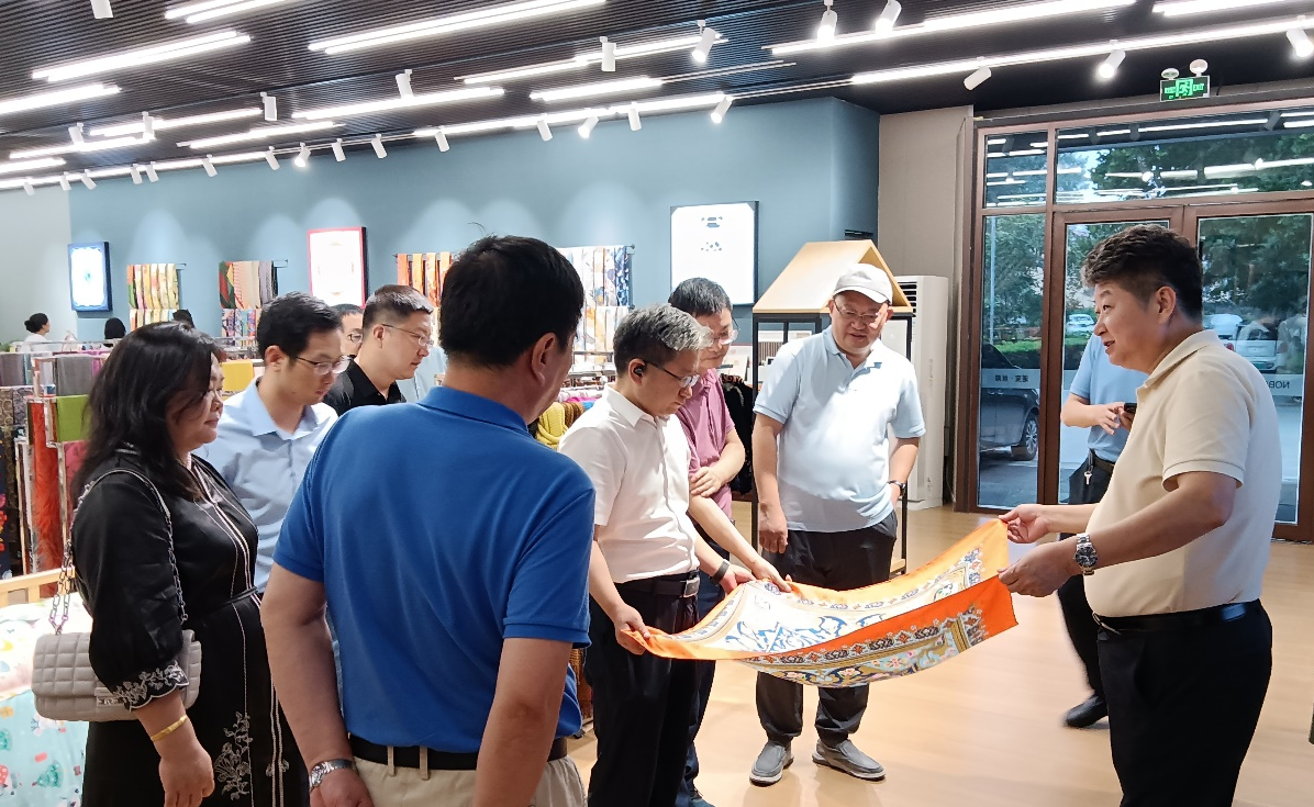代方銀首席一行實(shí)地考察了淄博大染坊絲綢集團(tuán)有限公司,中國(guó)絲綢協(xié)會(huì)副會(huì)長(zhǎng)、集團(tuán)公司黨委書(shū)記、董事長(zhǎng)陳魯介紹了企業(yè)在絲綢生產(chǎn)、非遺保護(hù)、文旅融合等方面的情況。雙方圍繞絲綢文化傳承與產(chǎn)業(yè)創(chuàng)新等主題進(jìn)行了座談交流,代方銀首席和崗位科學(xué)家們就絲綢文化挖掘與發(fā)揚(yáng)、傳統(tǒng)產(chǎn)業(yè)現(xiàn)代化轉(zhuǎn)型等方面提供了新思路,雙方還就國(guó)家蠶桑體系成果在企業(yè)轉(zhuǎn)化應(yīng)用進(jìn)行了探討。