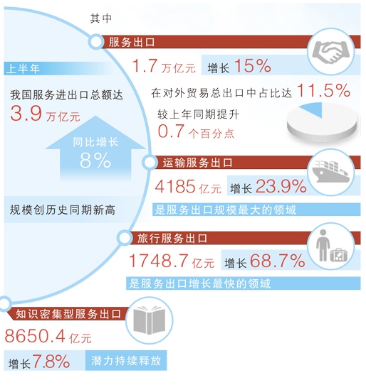 據(jù)新華社北京8月27日電 (記者謝希瑤)今年上半年,我國服務(wù)進(jìn)出口總額創(chuàng)歷史同期新高,旅行服務(wù)進(jìn)出口規(guī)模超過1萬億元,增速達(dá)到12.3%。預(yù)計(jì)全年服務(wù)貿(mào)易仍將保持增長(zhǎng),貿(mào)易結(jié)構(gòu)將持續(xù)優(yōu)化。