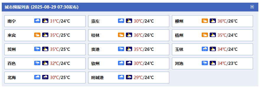 廣西氣象臺(tái)29日05時(shí)發(fā)布預(yù)報(bào):