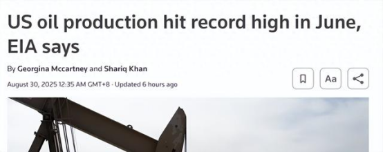 據(jù)路透社等外媒報道,當?shù)貢r間周五,美國能源信息署(EIA)發(fā)布的石油供應月度報告顯示,6月份美國原油(607, -8.60, -1.40%)日產(chǎn)量達到1358萬桶,創(chuàng)下歷史最高紀錄,較此前發(fā)布的初步周度估算數(shù)據(jù)高出約15萬桶/日。在原油產(chǎn)量增長的推動下,6月美國液體燃料總產(chǎn)量也攀升至2110萬桶/日的峰值,環(huán)比增長約14.5萬桶。
