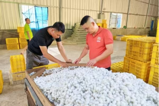 那坡縣百合鄉(xiāng)那樂村蠶繭收購現(xiàn)場(chǎng)