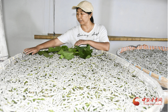 “這批秋蠶長勢特別好,再養(yǎng)十幾天就能上蔟結(jié)繭,按現(xiàn)在的行情,35張蠶能賣9萬多元!”在大南峪鎮(zhèn)養(yǎng)蠶大棚里,負責人李建娥一邊給幼蠶添桑葉,一邊算起增收賬。今年以來,她的合作社已養(yǎng)了160張蠶,收入40萬元,加上即將出欄的秋蠶,全年收入有望突破90萬元。不遠處的云臺鎮(zhèn)葸莊村,養(yǎng)蠶大戶葸志平的基地里,一條條肥碩的蠶寶寶正趴在蠶匾里“大快朵頤”,員工魏國平和同事們動作嫻熟地鋪撒桑葉,“我們基地雇了8名周邊留守婦女,她們每月能掙2000多元,家門口就能賺錢,還能照顧家里?!崩罱ǘ鹫f。