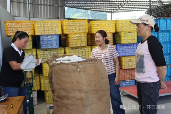 在大才鄉(xiāng)同進村蠶繭收購點,前來賣繭的蠶農絡繹不絕,收購點工作人員有條不紊地稱重、評級、定價、兌付現金,現場忙而有序?!敖裉焓?025年秋季第一批蠶繭上市,每公斤價格在53元到54元,蠶農都能有不錯的收益,大家積極性很高?!笔召忺c負責人陸凌海介紹,截至當日,該收購點已收繭約4000斤
