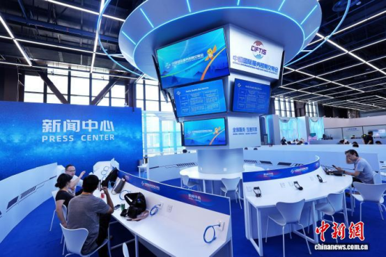 9月9日,在北京首鋼園區(qū)拍攝的2025年服貿(mào)會(huì)新聞中心