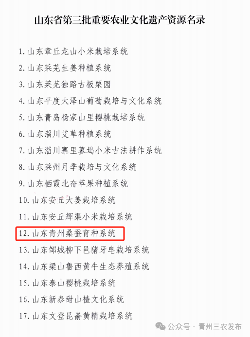 行業(yè)新聞丨山東青州桑蠶育種系統(tǒng)成功入選山東省第三批重要農業(yè)文化遺產資源名錄
