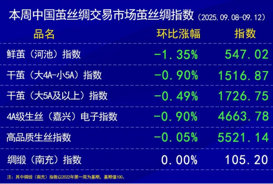 本周,高品質(zhì)生絲價(jià)格指數(shù)持穩(wěn)波動(dòng),整體略下跌。