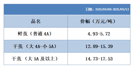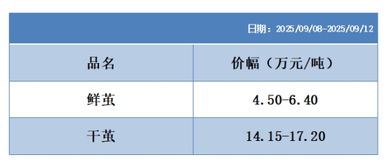 根據(jù)本周蠶繭報(bào)價(jià)按照指數(shù)方案形成的基準(zhǔn)品價(jià)格區(qū)間