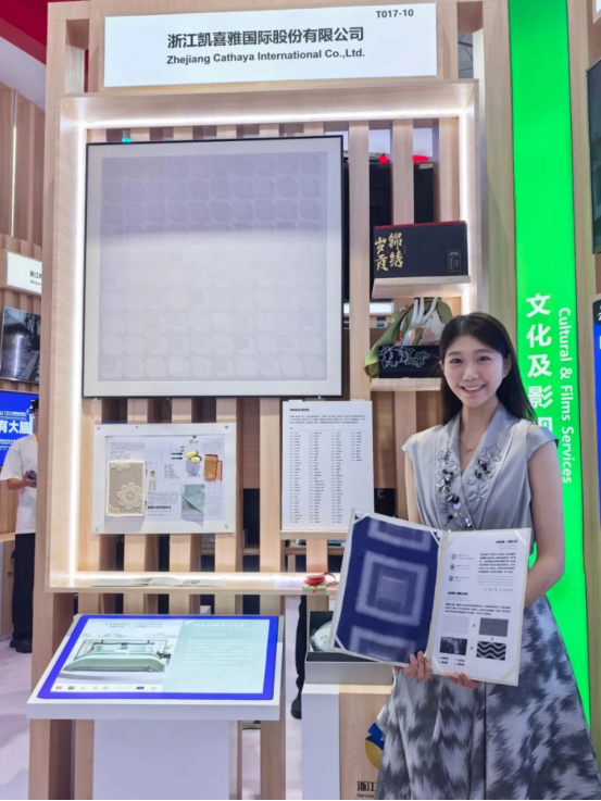 凱喜雅作為浙江展團(tuán)的重要成員之一,驚艷亮相服貿(mào)會(huì)現(xiàn)場(chǎng)!以“AI新絲路 品牌新思路”為主題,現(xiàn)場(chǎng)展示了自主研發(fā)的“蝴蝶緞”數(shù)字化AI織造技術(shù)——通過(guò)織機(jī)疊加AI算法,能實(shí)現(xiàn)每平方米有5500萬(wàn)個(gè)立體織點(diǎn),使得面料更厚實(shí)、更耐用、更精細(xì)。