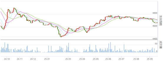 今日(2025年09月17日,周三)中國(guó)繭絲綢交易市場(chǎng)生絲電子指數(shù)微跌0.05%收于4665.64點(diǎn)。B絲2022D(商檢4A級(jí)生絲):250925合約報(bào)平,收于46.62萬(wàn)元;260325合約下跌0.06萬(wàn)元報(bào)收于46.77萬(wàn)元;260925合約下跌0.09萬(wàn)元報(bào)收于46.83萬(wàn)元。