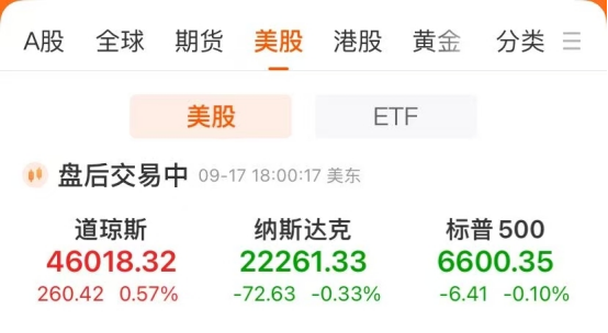 美東時(shí)間周三(9月17日),美股三大指數(shù)收盤漲跌不一,截至收盤,道指漲0.57%,納指跌0.33%,標(biāo)普500指數(shù)跌0.1%。