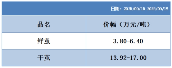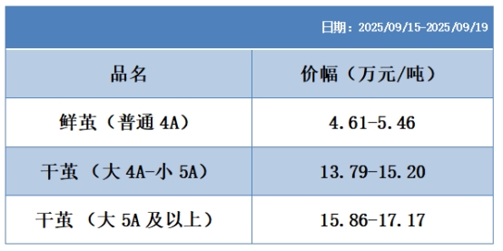 根據(jù)本周蠶繭報價按照指數(shù)方案形成的基準(zhǔn)品價格區(qū)間