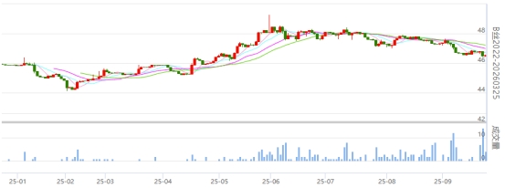 250925生絲合約終盤收于46.38萬元/噸(20250923)