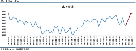 中東原油基準(zhǔn)的現(xiàn)貨溢價(jià)持續(xù)下跌,迪拜、穆?tīng)柊嗪桶⒙蛢r(jià)格均跌至數(shù)周新低,隨著歐佩克+的增產(chǎn)持續(xù)推進(jìn),反映出市場(chǎng)對(duì)供應(yīng)過(guò)剩的擔(dān)憂正在加劇。而油輪運(yùn)費(fèi)9月以來(lái)大幅拉升成為一個(gè)熱點(diǎn),雖然本周根據(jù)上海航運(yùn)所數(shù)據(jù)顯示運(yùn)費(fèi)略有回落,但仍處于近年來(lái)絕對(duì)高位,根據(jù) Clarksons 的最新數(shù)據(jù),VLCC現(xiàn)貨加權(quán)平均水平在9月中旬升至103,200 美元/天,個(gè)別航次甚至突破15萬(wàn)美元/天。這一場(chǎng)景揭示了大量的原油正投放到市場(chǎng)中來(lái)。從航次數(shù)據(jù)來(lái)看,中東(MEG)9 月放貨量超過(guò)165單,較上月顯著增加,10 月預(yù)計(jì)更高,美灣–遠(yuǎn)東航線也保持活躍,候選船極為有限,這種現(xiàn)象的背后是水上正有龐大的原油在運(yùn)輸途中。所以最近二周時(shí)間原油市場(chǎng)看似庫(kù)存數(shù)據(jù)并沒(méi)有給油價(jià)帶來(lái)壓力,但可能這是大幅累庫(kù)之前的短暫平靜期,就像臺(tái)風(fēng)眼中的平靜。這個(gè)(累庫(kù))壓力可能要在后續(xù)的時(shí)間體現(xiàn)到市場(chǎng)中。根據(jù)Kpler的高頻數(shù)據(jù)跟蹤9月份全球范圍為包括浮動(dòng)倉(cāng)儲(chǔ)及運(yùn)輸中的原油較8月底增長(zhǎng)了8000萬(wàn)桶,這部分原油增量到達(dá)目的地之后預(yù)計(jì)石油市場(chǎng)將呈現(xiàn)非常明顯的庫(kù)存累計(jì)。
