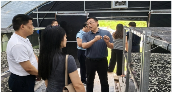 活動(dòng)重點(diǎn)調(diào)研了金橋鎮(zhèn)三臺(tái)村僵蠶養(yǎng)殖基地,針對(duì)基地在桑園秋季病蟲害防治、肥水管理和僵蠶飼養(yǎng)過程中的消毒防病等技術(shù)難點(diǎn),我院專家團(tuán)隊(duì)進(jìn)行了精準(zhǔn)指導(dǎo)和現(xiàn)場(chǎng)示范,并贈(zèng)送蠶科院《養(yǎng)蠶實(shí)用技術(shù)》手冊(cè),幫助基地技術(shù)人員更熟練掌握蠶桑種養(yǎng)殖技術(shù)要點(diǎn)。各黨支部同志就僵蠶養(yǎng)殖產(chǎn)業(yè)的創(chuàng)新發(fā)展、效益提升及蠶桑特色經(jīng)濟(jì)發(fā)展展開研討交流,并表示未來(lái)可加強(qiáng)產(chǎn)學(xué)研合作,進(jìn)一步加大“桑園+”種養(yǎng)結(jié)合模式、僵蠶產(chǎn)業(yè)高值化加工技術(shù)研究、蠶沙綜合利用等方面的關(guān)鍵技術(shù)協(xié)同攻關(guān)。