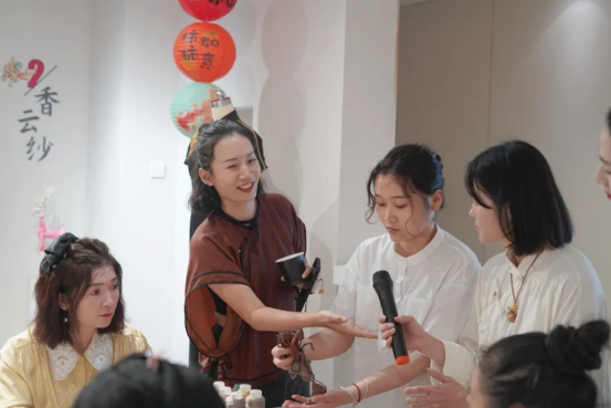 開展當(dāng)日舉辦的香云紗特色主題沙龍,通過影像放映、圖文解讀、手工體驗(yàn)等多元形式,觀眾全方位了解香云紗的制作過程。