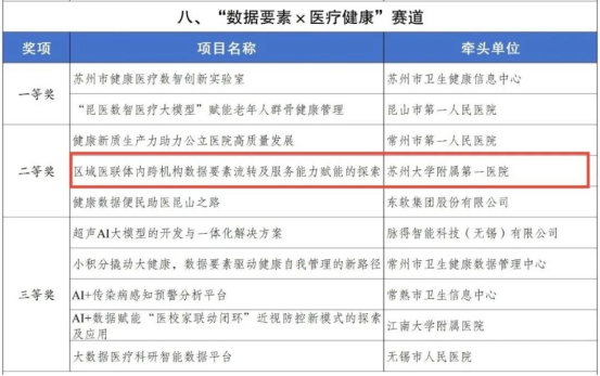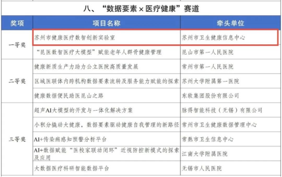 其中,“蘇州絲綢紋樣數(shù)據(jù)活化工程”“蘇州市健康醫(yī)療數(shù)智創(chuàng)新實(shí)驗(yàn)室”項(xiàng)目獲一等獎(jiǎng),“基于一體化數(shù)據(jù)底座的國(guó)資企業(yè)‘監(jiān)管+服務(wù)’智能平臺(tái)”“區(qū)域醫(yī)聯(lián)體內(nèi)跨機(jī)構(gòu)數(shù)據(jù)要素流轉(zhuǎn)及服務(wù)能力賦能的探索”項(xiàng)目獲二等獎(jiǎng),“智來多模態(tài)火災(zāi)防控應(yīng)急疏散大模型”項(xiàng)目獲三等獎(jiǎng)。