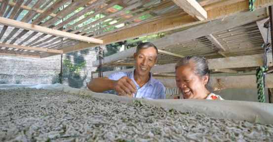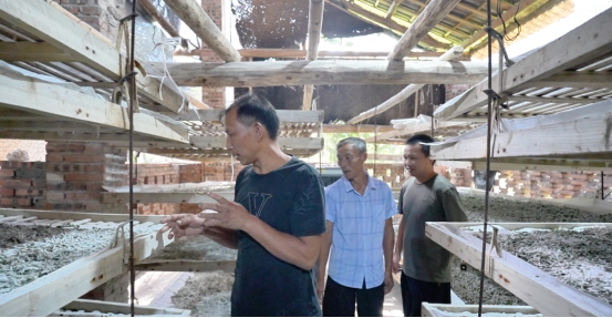 “因為養(yǎng)蠶時間短,掙錢快,上半年把莊稼種好了,下半年就養(yǎng)蠶,每個月20多天就把錢賺了?!蔽屣@村村民沈明山開心地說。