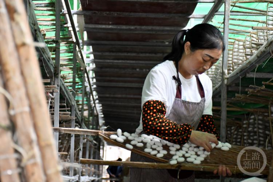 在黔江區(qū)新華鄉(xiāng)中安村,養(yǎng)蠶戶正忙著采收桑蠶繭,新鮮的桑蠶繭很快就運(yùn)到了鄉(xiāng)里的收購站,經(jīng)過稱重、選繭、測量含水率之后,再依據(jù)質(zhì)量分級定價。