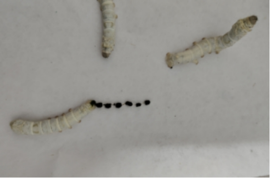 1、生長異常:感染初期無異常;感染 3-5天后才逐漸顯現(xiàn)癥狀,發(fā)育遲緩,體型偏小,排連珠糞等;通常7天后,病蠶食欲銳減,踏葉現(xiàn)象明顯,呈“空頭”蠶;發(fā)病嚴重時排泄黏糞、污水,白糞;嚴重時也表現(xiàn)出吐水現(xiàn)象。若響食后發(fā)病體壁多皺著;混育感染常導致大蠶期假熟蠶,不結繭。