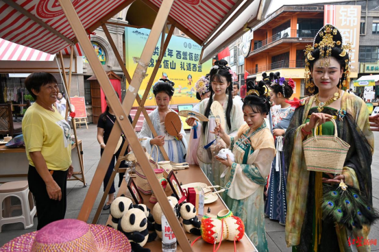 ▲市民穿著漢服在非遺集市體驗(yàn)