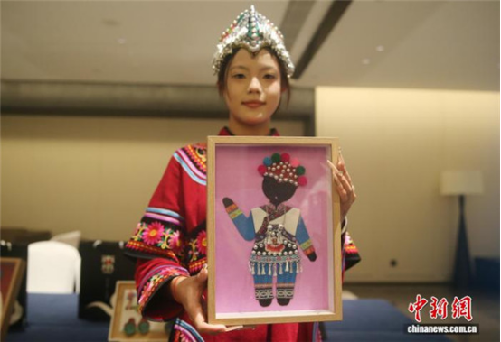 10月13日,商家展示彝繡文創(chuàng)產(chǎn)品