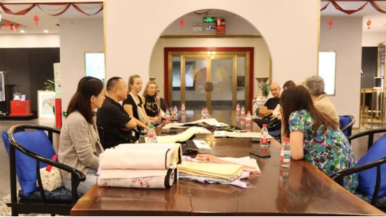 在董事長吳建華的陪同下,沉浸式體驗宋錦這一中華千年織造技藝的璀璨魅力,更以一場友好洽談搭建起中西方絲綢文化與時尚產(chǎn)業(yè)交流的新橋梁。