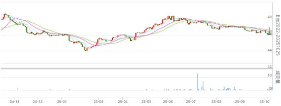 今日(2025年10月16日,周四)中國(guó)繭絲綢交易市場(chǎng)生絲電子指數(shù)報(bào)平,收于4636.02點(diǎn)。B絲2022D(商檢4A級(jí)生絲):251025合約報(bào)平,收于46.14萬元;260325合約下跌0.06萬元報(bào)收于46.62萬元;260925合約下跌0.03萬元報(bào)收于46.56萬元。
