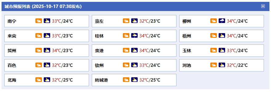 廣西氣象臺(tái)17日05時(shí)發(fā)布預(yù)報(bào):