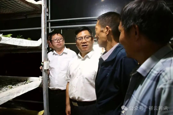 10月15日下午,陳真永在祥云縣劉廠鎮(zhèn)松梅村大棚養(yǎng)蠶基地調(diào)研蠶桑產(chǎn)業(yè)發(fā)展情況