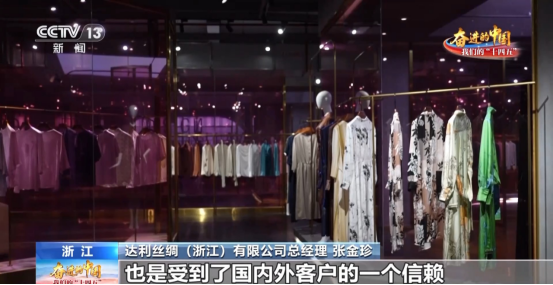 達(dá)利絲綢(浙江)有限公司總經(jīng)理 張金珍:桑蠶絲和羊毛交織的這一款產(chǎn)品,絲毛面料出來后受到了國內(nèi)外客戶的信賴,訂單增長差不多30%以上。