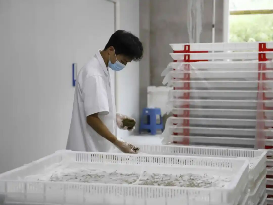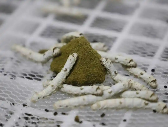 飼料養(yǎng)蠶很大優(yōu)勢在于節(jié)省人力。陳安介紹:“蠶有5個(gè)生長齡期,傳統(tǒng)養(yǎng)殖方式下,每天需要桑葉喂養(yǎng)3次,而飼料養(yǎng)殖每一個(gè)齡期只喂兩次就夠了,喂一次可以吃兩到三天。”