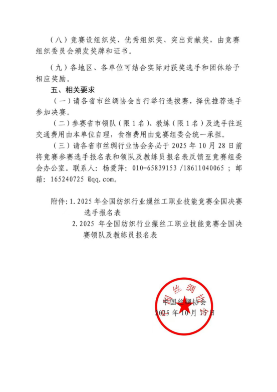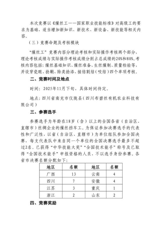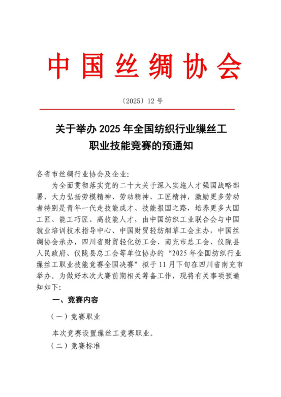 關于舉辦2025年全國紡織行業(yè)繅絲工職業(yè)技能競賽的預通知