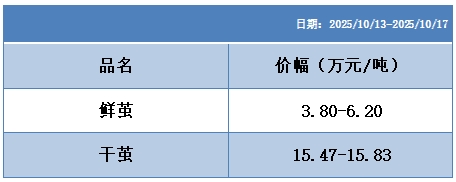 鮮繭價格指數(shù)上,廣西等主產(chǎn)區(qū)第三至第五批秋繭收購持續(xù)推進(jìn),工廠平均收購價環(huán)比上周繼續(xù)有所走高,帶動鮮繭價格指數(shù)收紅。短期鮮繭端的成本支撐效應(yīng)有所強(qiáng)化。